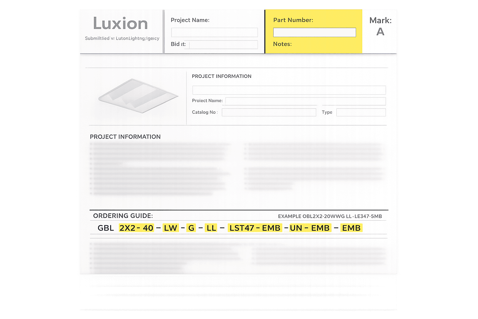 Automatically builds accurate part numbers based on your selected fixture and line card—and highlights them directly on the submittal. No manual configuration required.